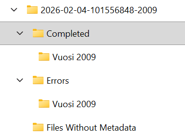 Olen tämän prosessin jälkeen nimennyt tuon Vuosi 2009 kansion pelkästään 2009:ksi ja sitten siirtänyt koko prosessoidun kansion Nextcloudiin. Tuo NAS on minulla vasta suunnitteilla.